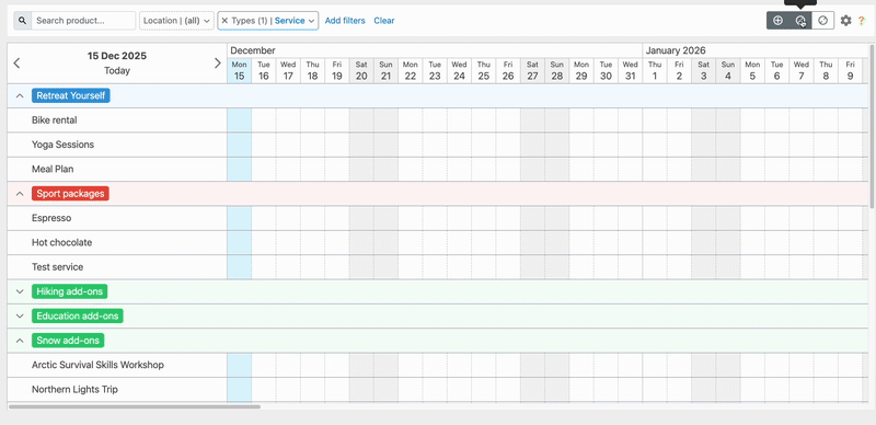Services and transfers product types slots can now be directly blocked and unblocked in the calendar by drag & drop, just like accommodations.