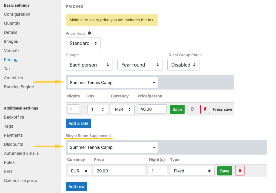 Product variants might include bus stops in transfer services, different pillow sizes or bed types (separate or joined beds) in accommodations, various bike types for a cycling tour in activities, or meal preferences (e.g., vegan or gluten-free) in services. You can assign a unique price to each product variant, depending on its value.